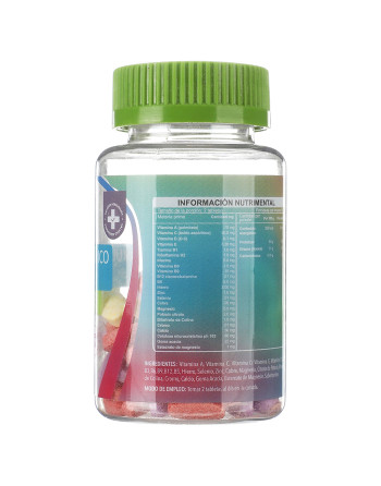 Vitaminas b, vitamina a, vitamina C, Vitamina E, magnesio, hierro, zin, calcio, vitamina D, Grenetina.